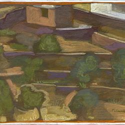 Το τοπίο είναι ένα αγαπημένο θέμα του Μ.Κ. είτε το βλέπει σαν αυτόνομο έργο είτε αρκετά συχνά σαν τμήμα μιας μεγαλύτερης σύνθεσης.