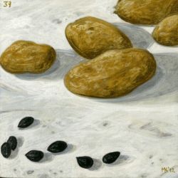 The 365 works where painted from May 2012 to May 2013, without any stylistic, subject matter or technical limitation. The only obligation was dimension and the effort to complete one work per day. The works are 20x20 cm and 20x25 cm. They have been created with a vast variety of techniques: mainly acrylic on wood but also drawings with pencil or charcoal, casein or silicate paint on mortar, monotype, true fresco as well as photography or digital printing.