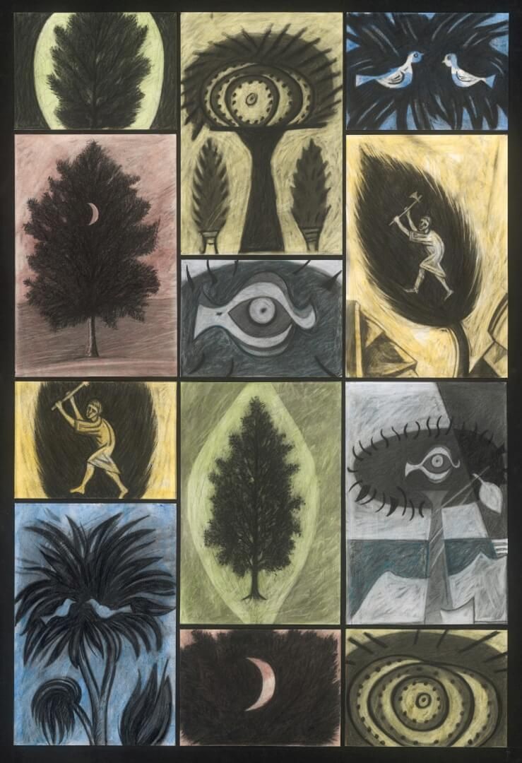 A series of paintings and works on paper (drawings, monotypes, mixed media) relating to the presentation of the Tree throughout Art History. It is a visual history of painting from ancient times till modernism using the tree as a vehicle.