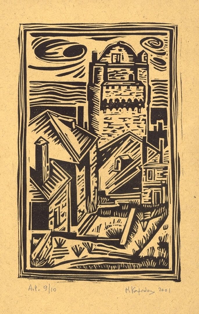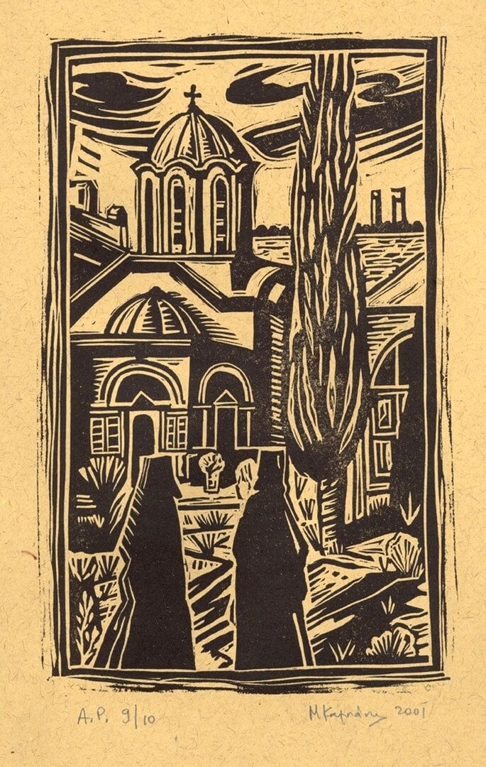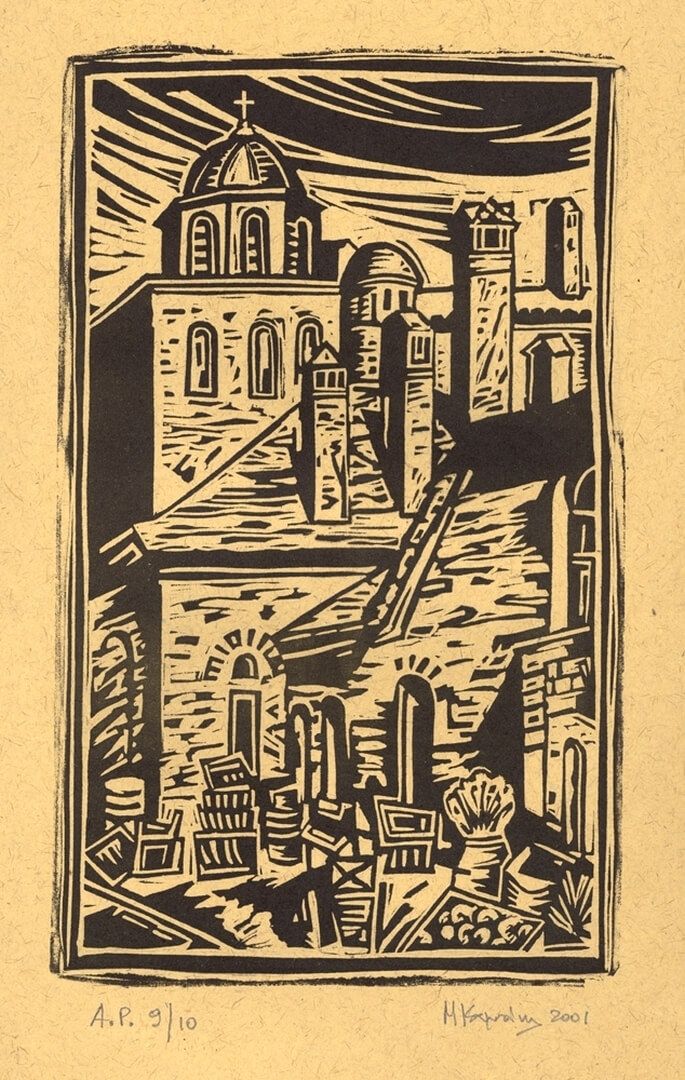 Λεύκωμα πέντε χαρακτικών σε λινόλαιο, 22x13εκ, χαραγμένα το 2001 και τυπωμένα σε 100 αντίτυπα και 10 δοκίμια σε χαρτί Khadi 210 γρ. διαστάσεων 39x28 εκ.
