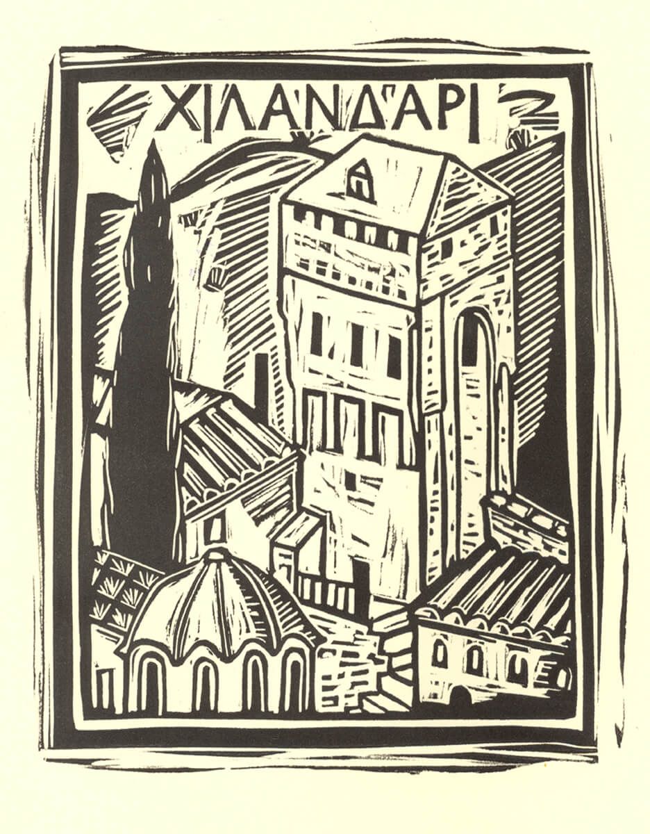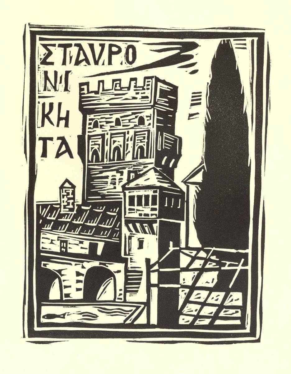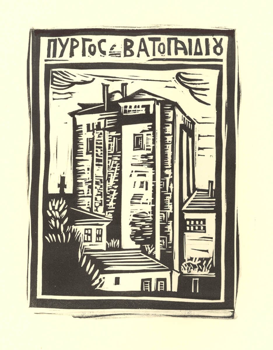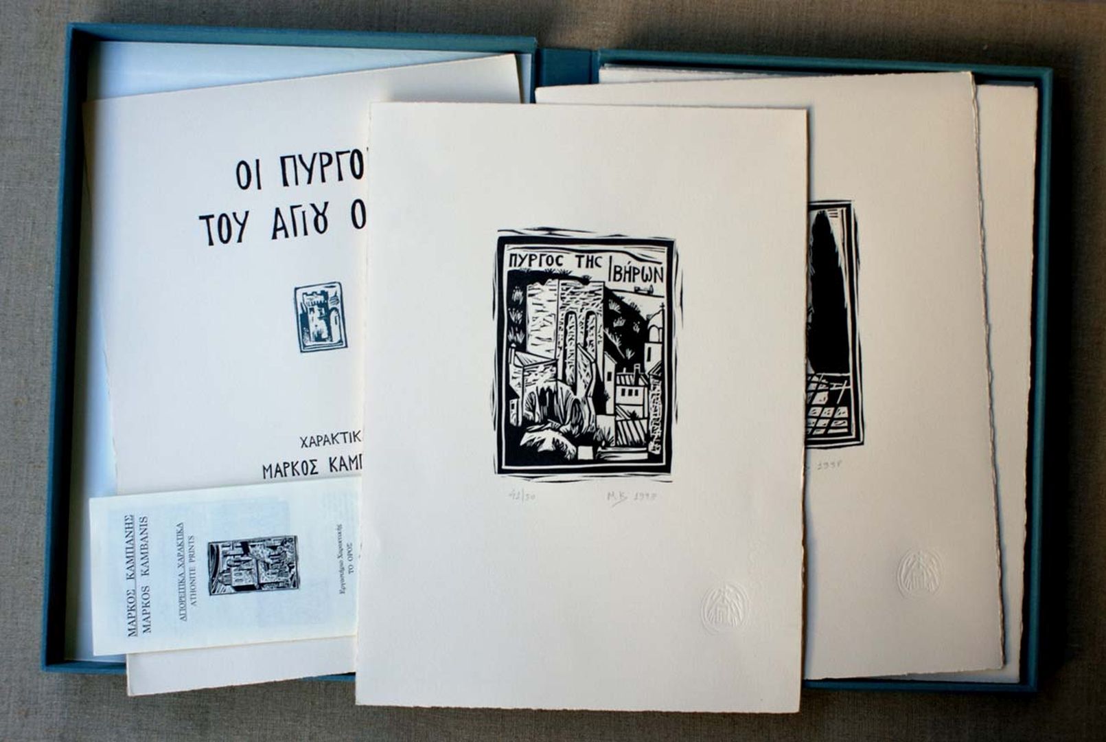 Οι Πύργοι του Αγίου Όρους είναι ένα σύνολο 32 χαρακτικών σε λινόλαιο που χαράχθηκαν και τυπώθηκαν το 1998 σε δύο διαφορετικά χαρτιά, Somerset και Khadi, σε 50 αντίτυπα και δέκα καλλιτεχνικά δοκίμια. Παράλληλα με τα χαρακτικά εκδόθηκε το βιβλίο