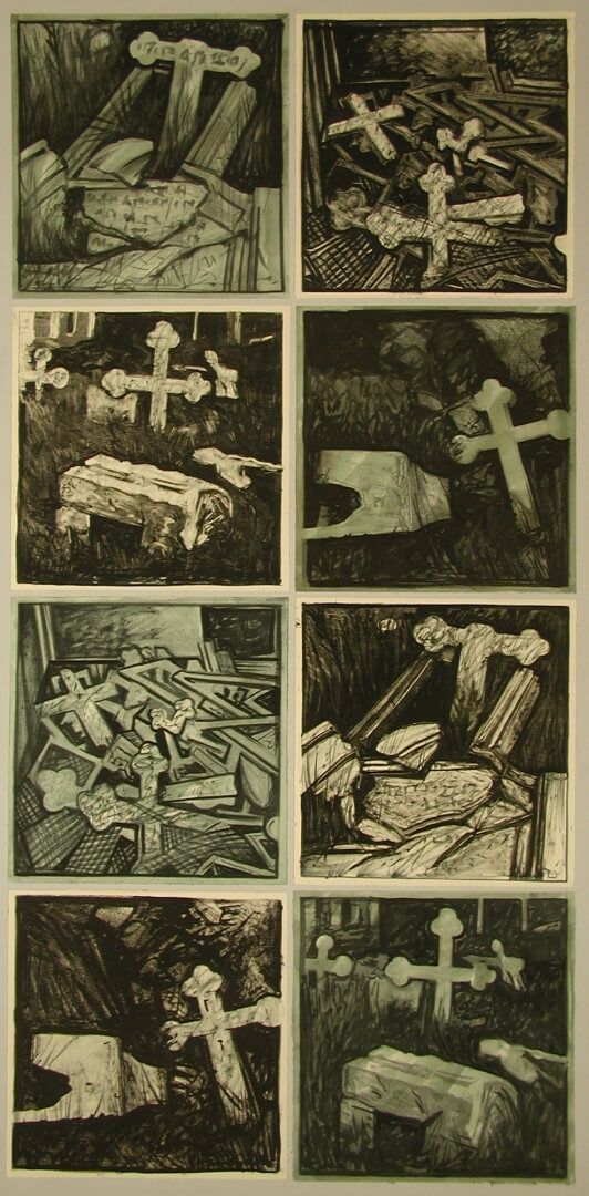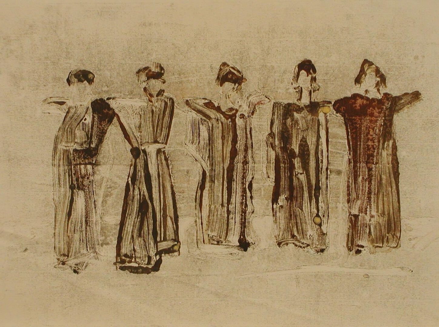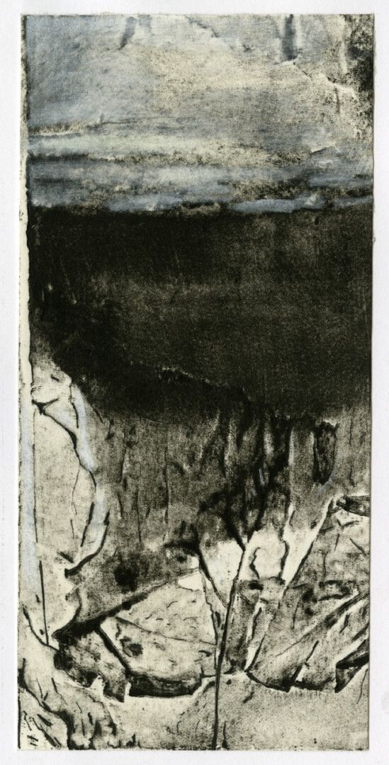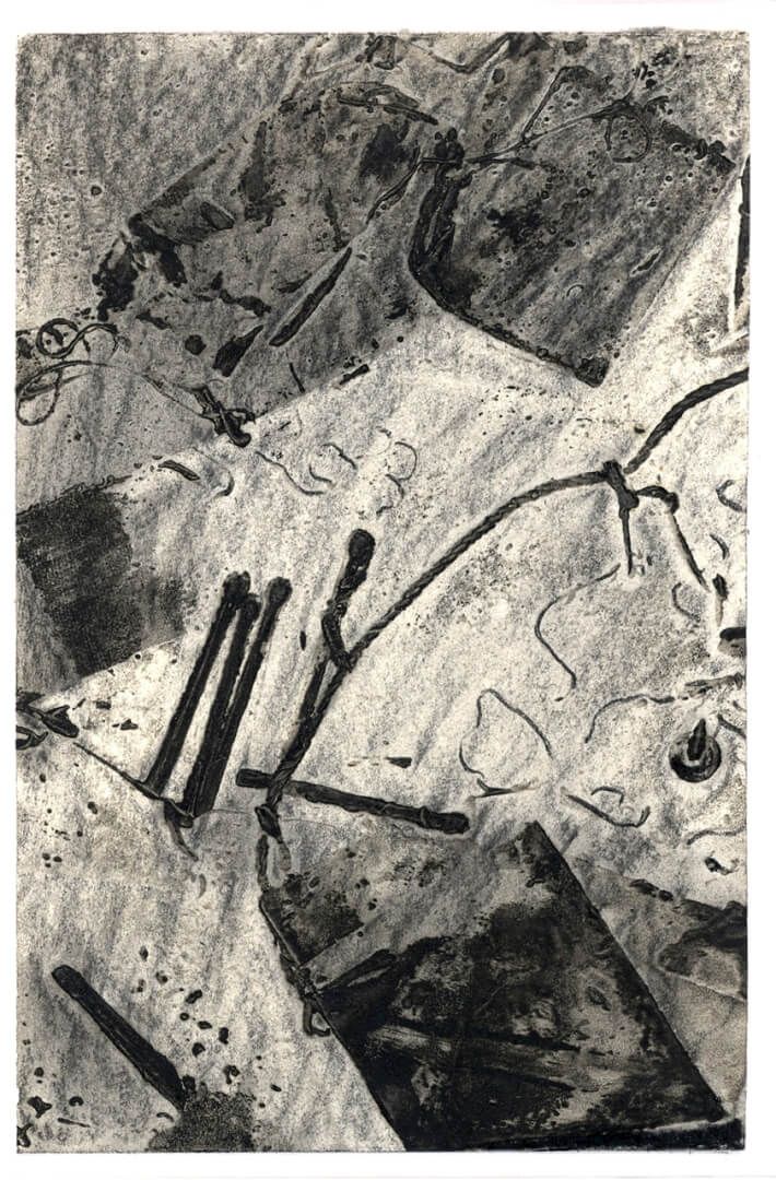 Η μονοτυπία είναι μια τεχνική ανάμεσα στη ζωγραφική και τη χαρακτική. Θα μπορούσε να οριστεί ως τυπωμένη ζωγραφική (painterly printmaking). Το τελικό έργο (που είναι μοναδικό, σε αντίθεση με τη χαρακτική όπου έχουμε πανομοιότυπα αντίτυπα) είναι εκτύπωση, χωρίς όμως να υπάρχει πάντα ή συνήθης μήτρα. Στα έργα της έκθεσης πολλές από αυτές τις μήτρες έχουν δημιουργηθεί από κολλάζ διαφόρων αντικειμένων (κολλαγραφία), όπως φύλλα, σκουπιδάκια, χαρτιά, αποτσίγαρα.