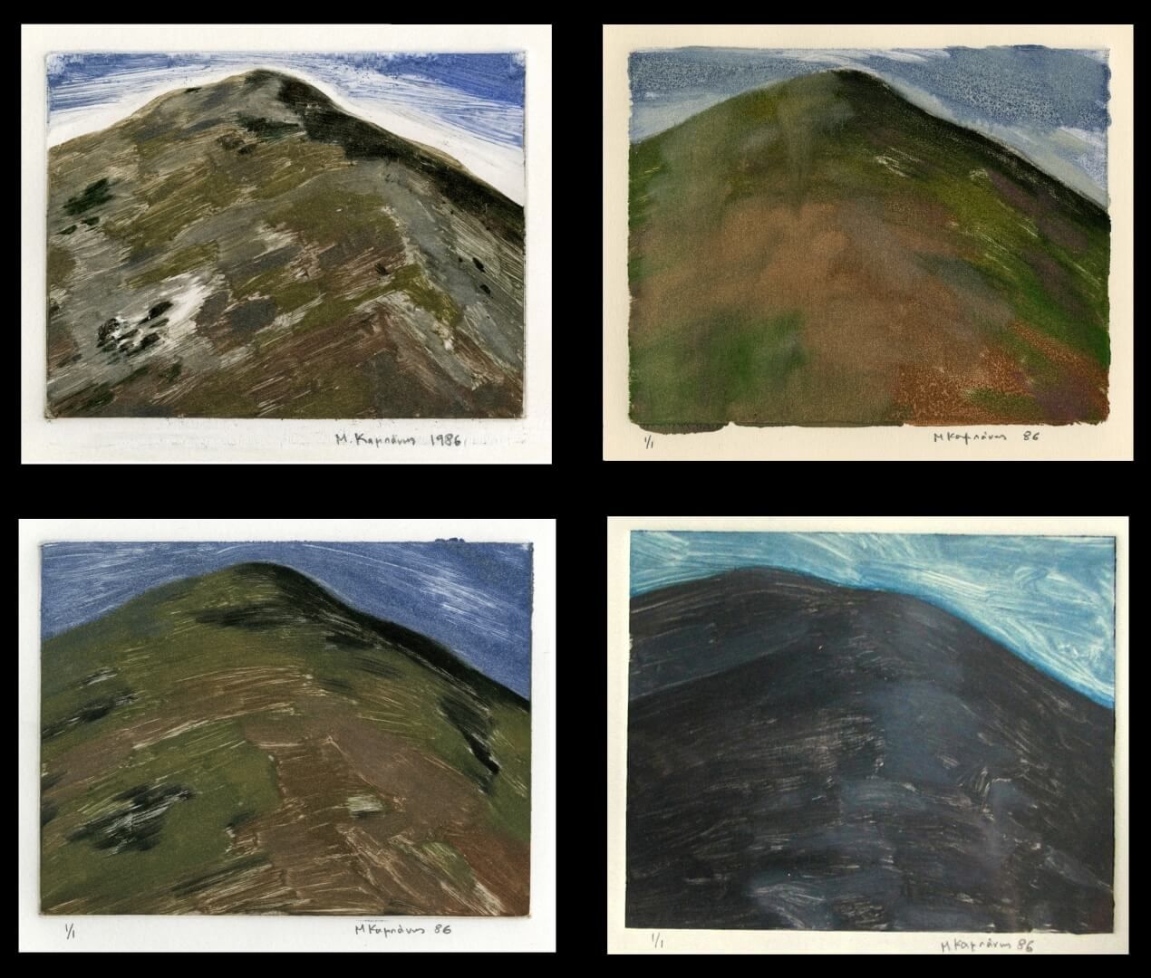 Το 2007 και το 2008 παρουσιάστηκε στο βιβλιοπωλείο του Μορφωτικού Ιδρύματος της Εθνικής Τραπέζης στην Αθήνα και τη Θεσσαλονίκη μια αναδρομική έκθεση μονοτυπιών, με κείμενο της Ειρήνης Οράτη και του Μ.Κ. (βλέπε Εκθέσεις).