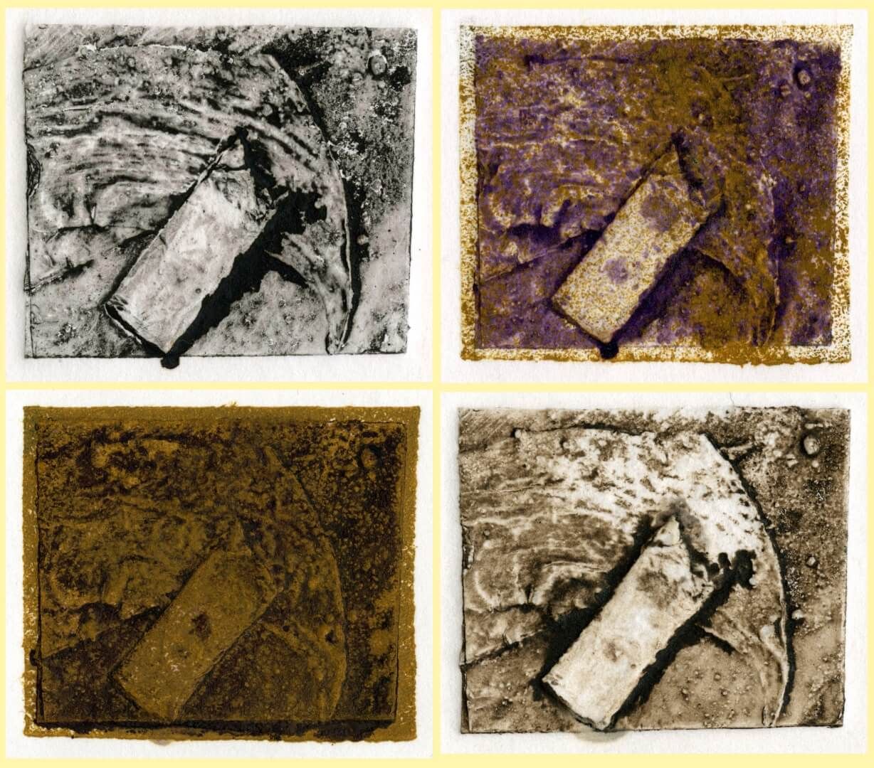 Μερικές μονοτυπίες έχουν υποστεί μικρές ζωγραφικές επεμβάσεις εκ των υστέρων, ενώ άλλες είναι το αποτέλεσμα πολλαπλών εκτυπώσεων πάνω στο ίδιο χαρτί με διαφορετικής απόχρωσης η ρευστότητας μελάνια.