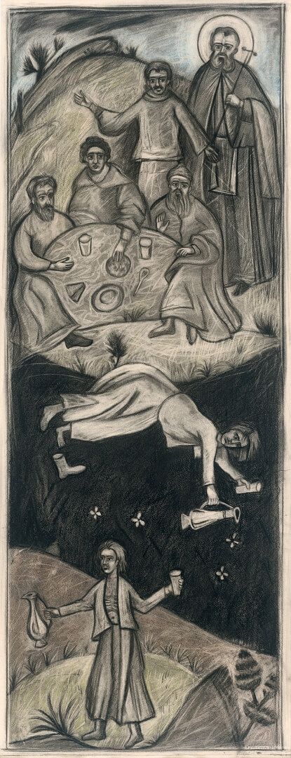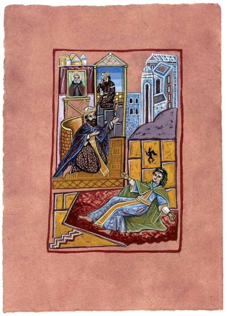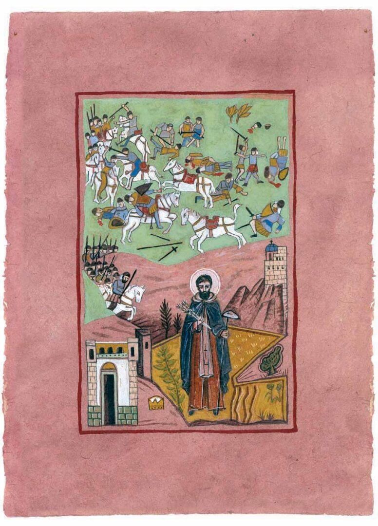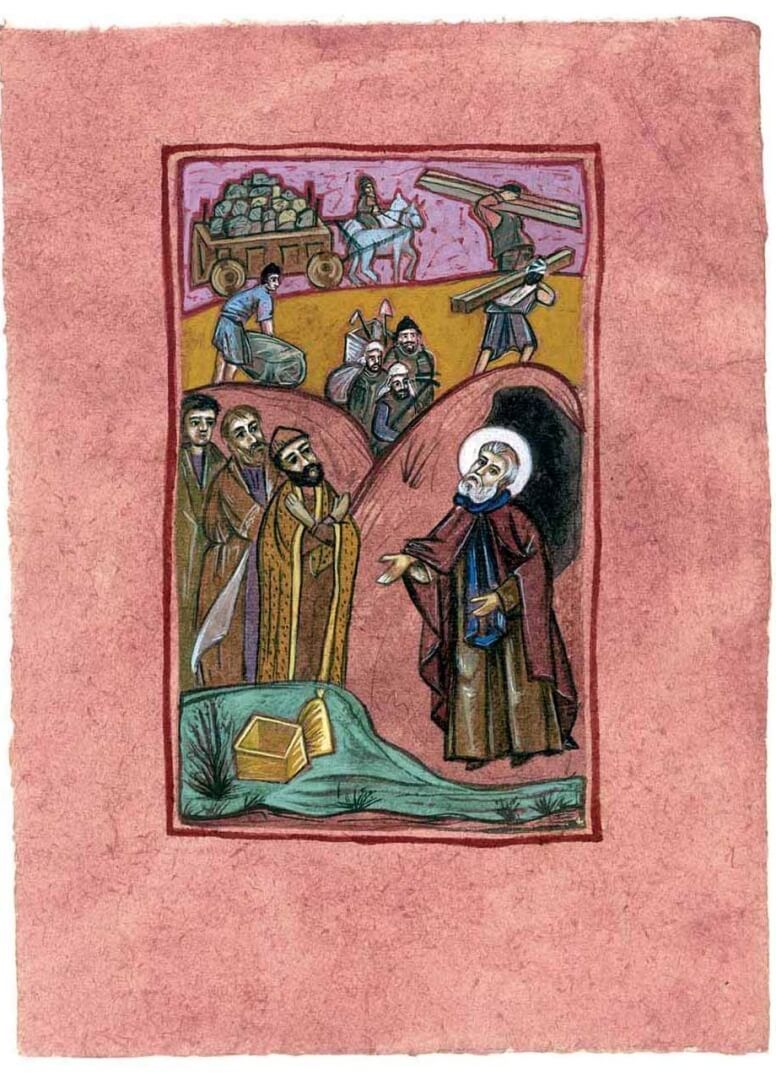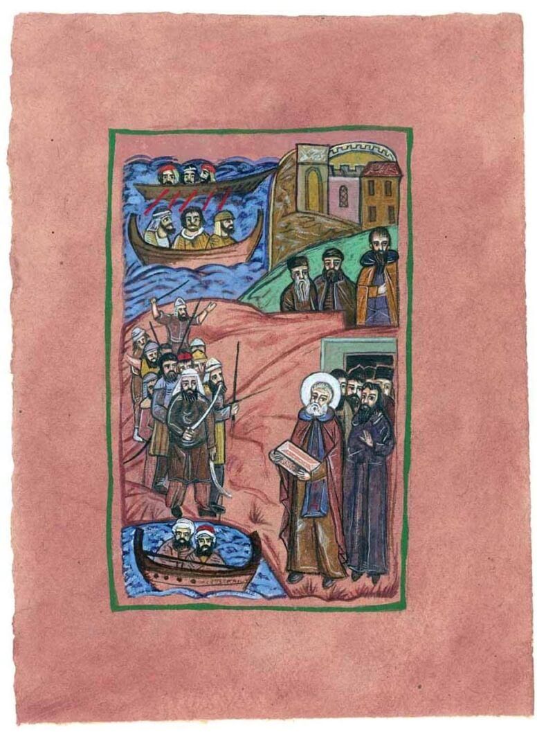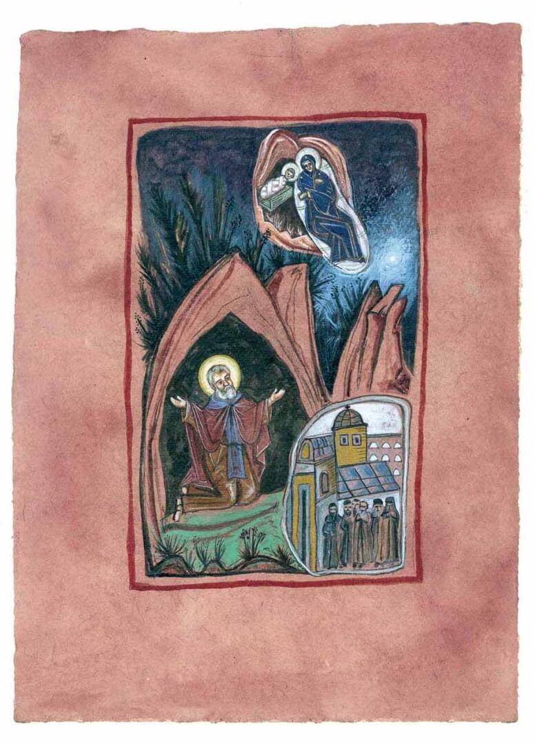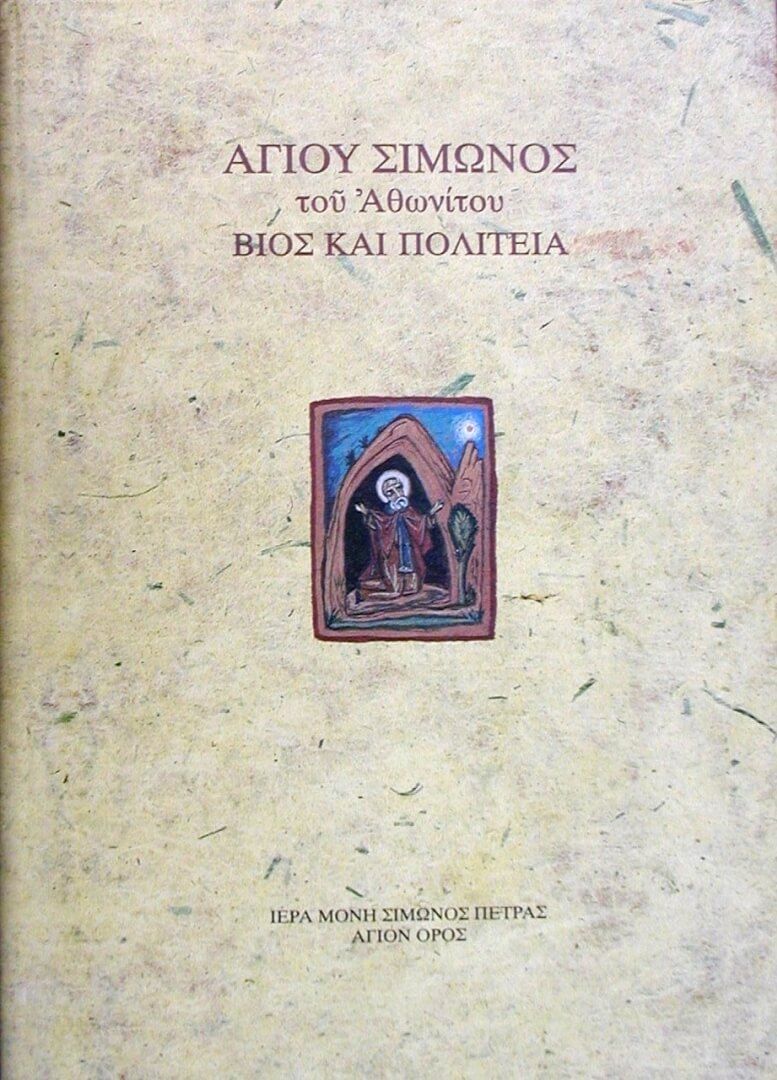 Εικονογράφηση του βιβλίου Αγίου Σίμωνος Βίος και πολιτεία, σε κείμενο Γαβριήλ Νικολάου Πεντζίκη. Έκδοση της Ι.Μ. Σίμωνος Πέτρας του Αγίου Όρους το 2000. Τα έργα έγιναν με ακρυλικό χρώμα σε χειροποίητο χαρτί Khadi, διαστάσεων 39x28 και 39x55 εκ.