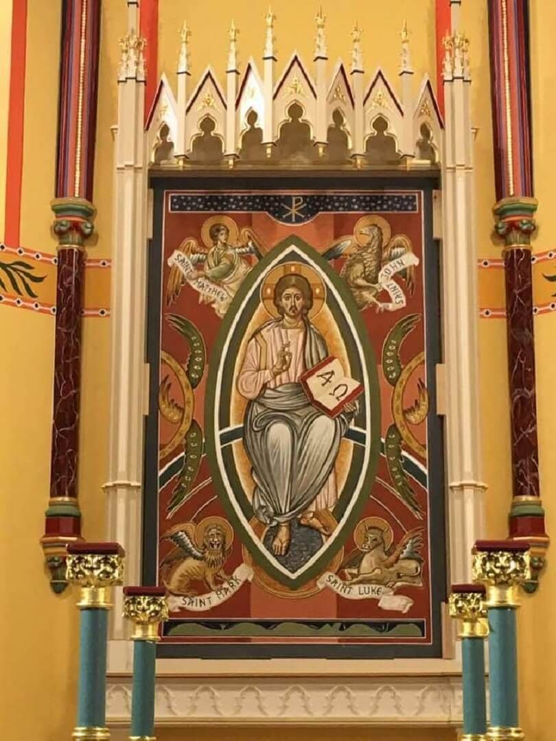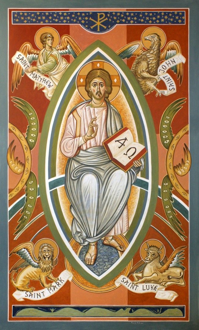 The icon of “Christ in glory” was completed and has been installed  in the sanctuary of St. Mary Help of Christians Catholic church in Chester, Illinois. It is a large painting with acrylic on canvas, dim. 290 x 173 cm.