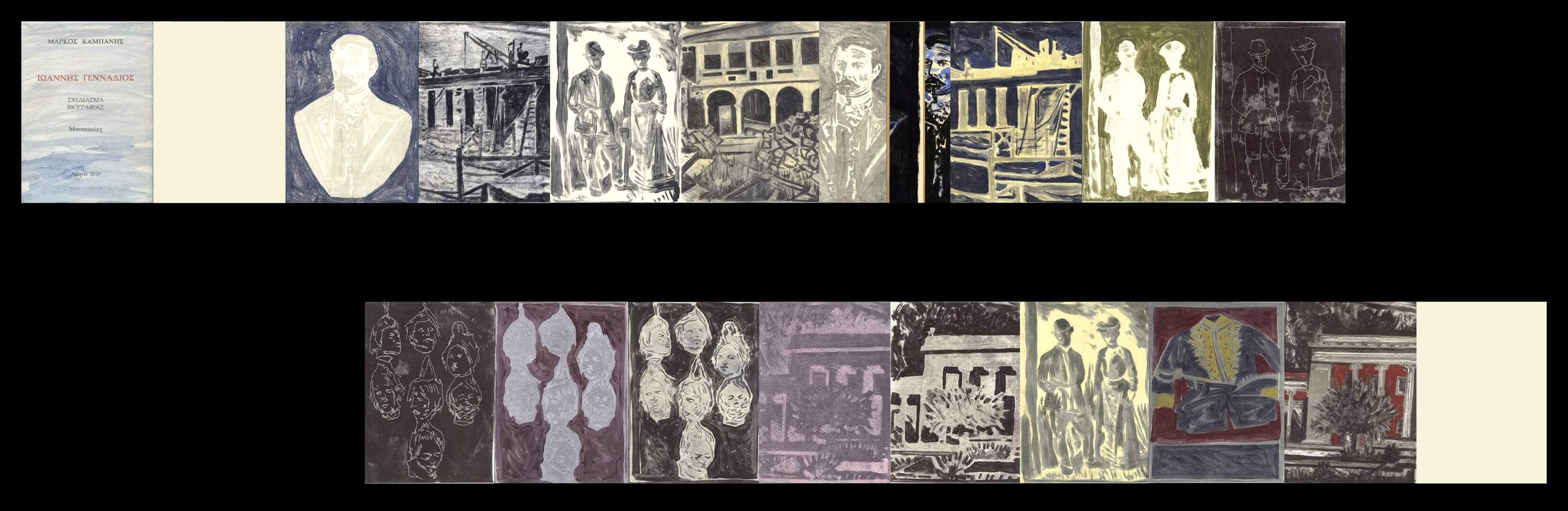 Ioannis Gennadius – A biography scetch, 2010, consists of sixteen monotypes produced for the exhibition about Ioannis Gennadius, in June 2010 at the Gennadius Library in Athens.
