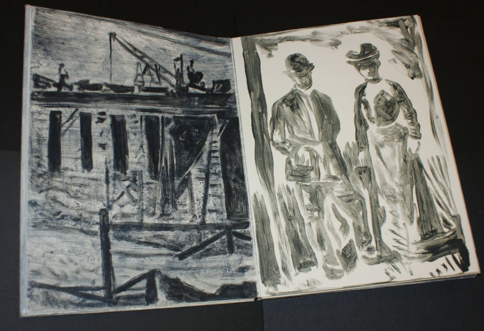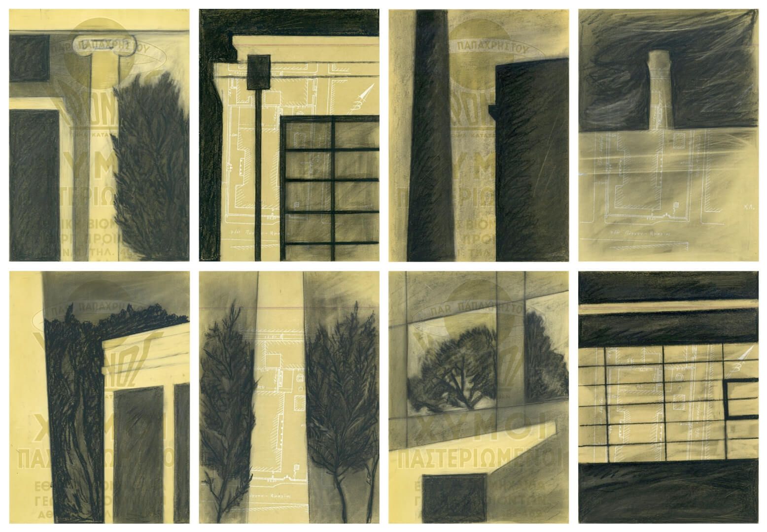 Doridos 1 – Kronos, 2018, a book of eight images of the old factory of Kronos in Tavros, Athens, now the headquarters of the Historical Archives of the Piraeus Group Cultural Foundation. Charcoal, pastel and digital printing on Hahnemuhle paper.