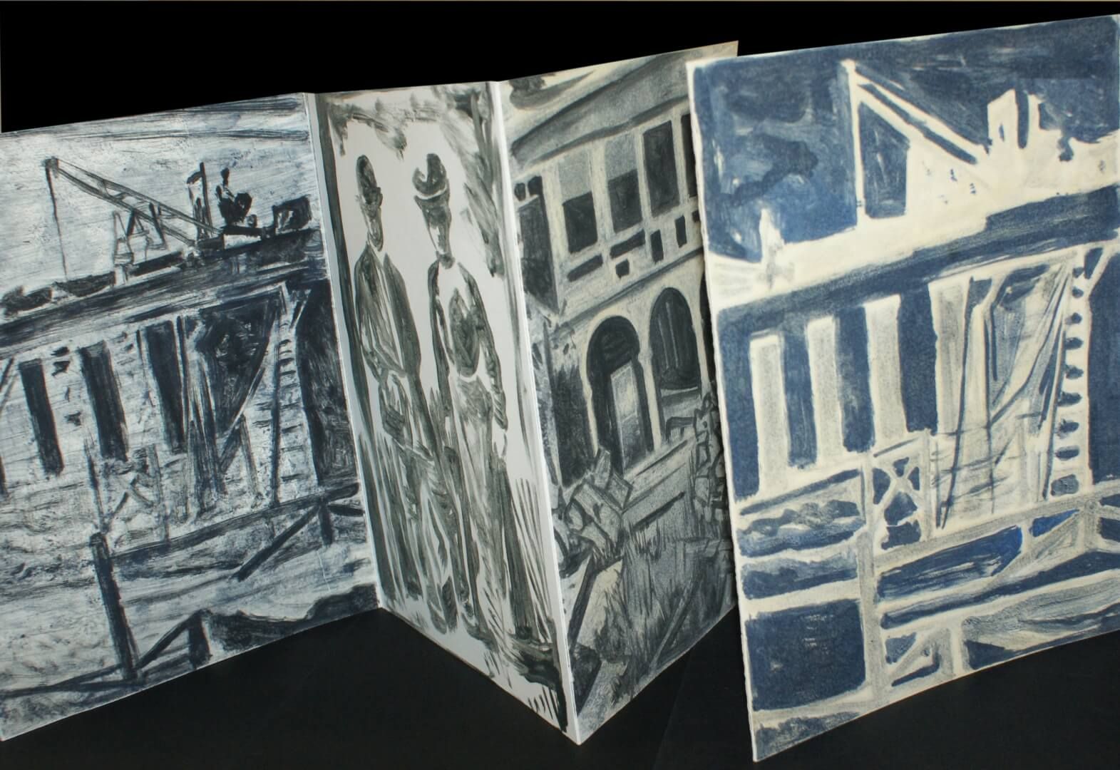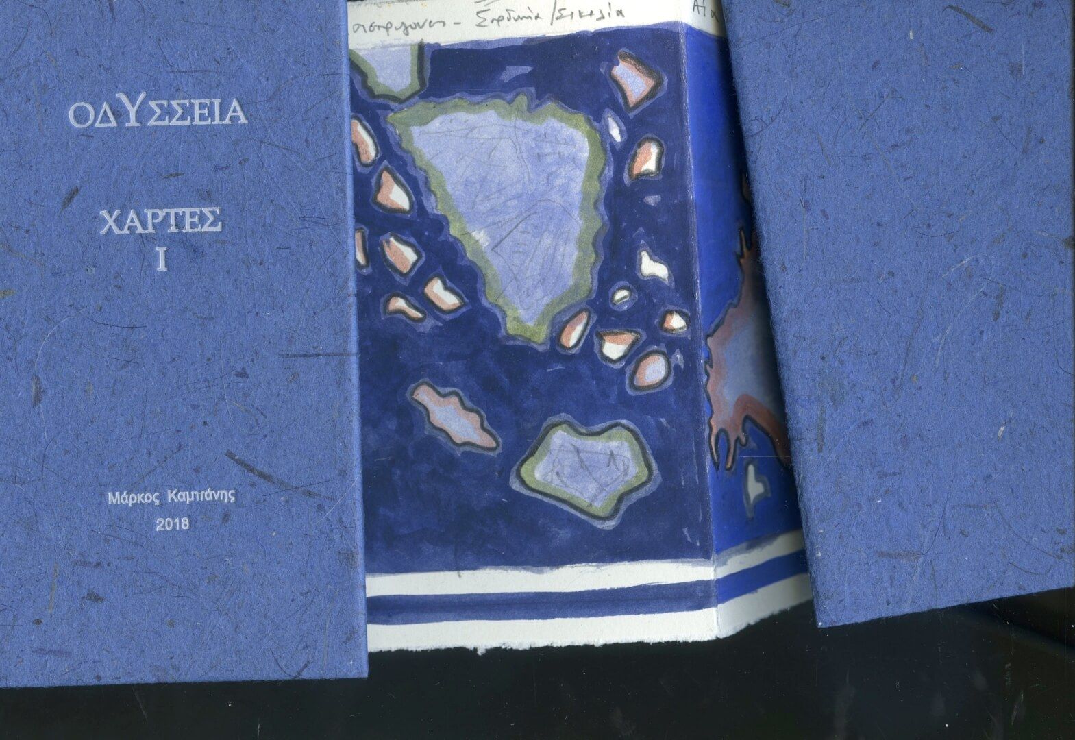 Odyssey- Maps I, 2018, a 22 page book painted with acrylic on Somerset paper. It is a part of a larger project underway concerning the Homer’s Odyssey.